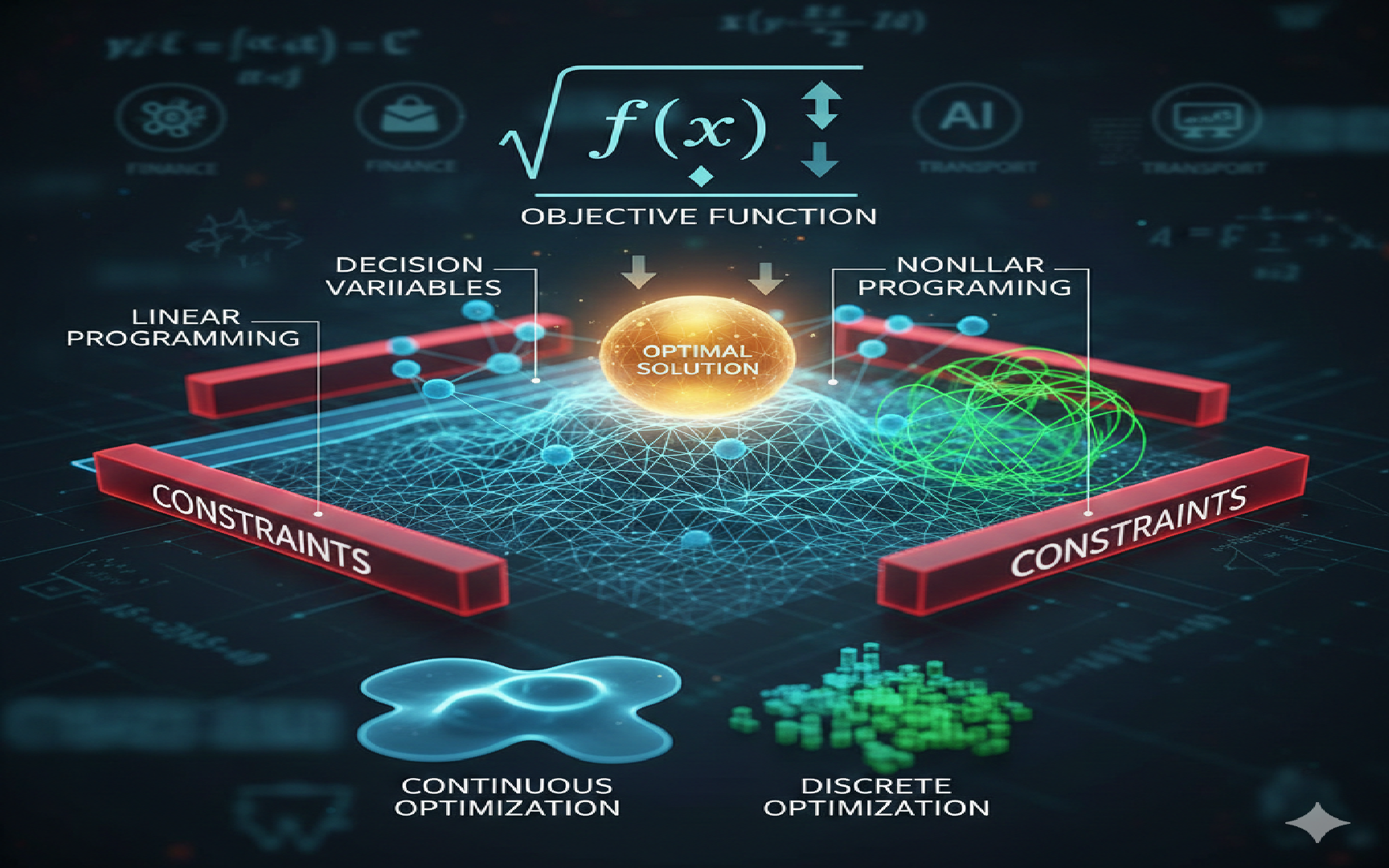 Optimization is finding the best solution (max/min) from a set of feasible solutions to meet specific objectives under constraints. It is a fundamental discipline in applied mathematics and engineering, used widely in decision-making across fields like finance, AI, and transport.